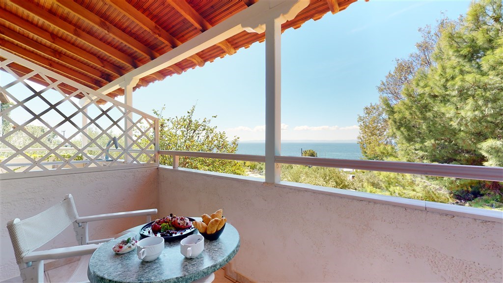 balkón nebo terasa s výhledem do zahrady nebo na moře