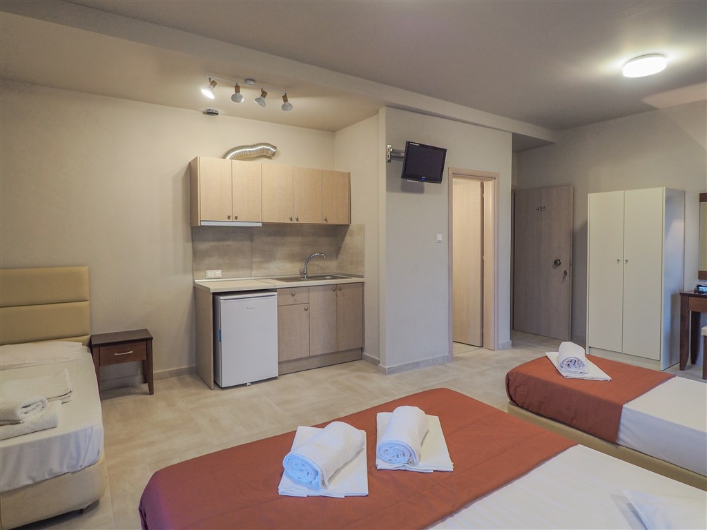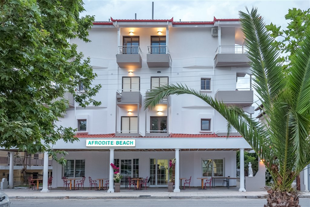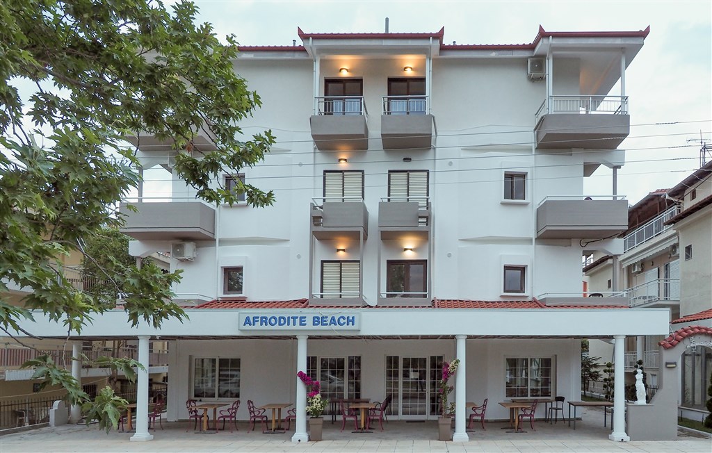 Útulný rodinný hotel Afrodite Beach je situován v klidné části letoviska asi 50 metrů od široké písečné pláže. Autobusová zastávka pro spojení s městečkem Platamonas i Thessaloniki se nachází u hotelu.