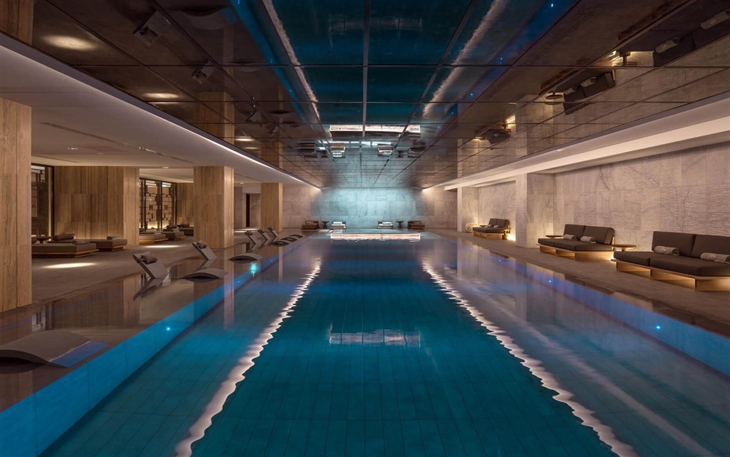 celkem 4 bazény včetně venkovního infinity bazénu s mořskou vodou jen pro dospělé, dětského bazénu a vnitřního vyhřívaného bazénu,