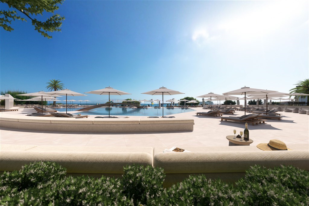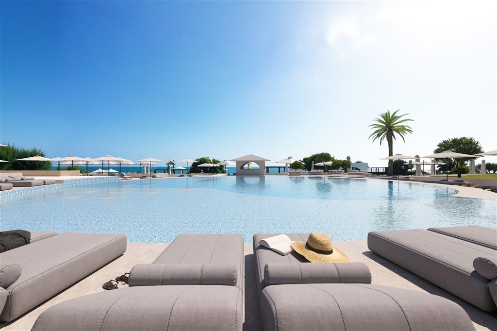 lehátka a slunečníky u bazénů i na pláži bez poplatku, plážové osušky,