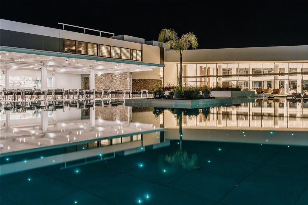 interiér 30 m², individuálně klimatizované, moderně zařízené pokoje, open plan koupelna se sprchovým koutem a odděleným WC, vysoušeč vlasů, koupací pláště a pantofle, SAT TV, rádio, telefon, trezor, lednička, Nespresso kávovar, vybavení pro přípravu čaje, balkón nebo terasa s privátním bazénem. Max. obsazenost 2 dospělé osoby. Junior suita výhled do zahrady / výhled na moře
