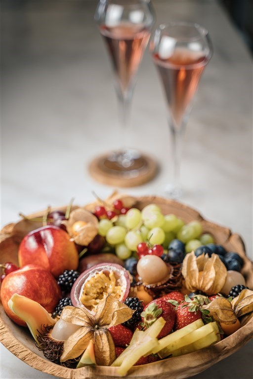 Interiér 47 m², individuálně klimatizované moderně zařízené suity s oddělenou ložnicí a s dvoulůžky nebo dvěma samostatnými lůžky a rozkládací pohovkou nebo dvěma samostatnými pohovkami v obývacím pokoji, open plan koupelna se sprchovým koutem a odděleným WC, vysoušeč vlasů, koupací pláště a pantofle, SAT TV, rádio, telefon, trezor, lednička, Nespresso kávovar, vybavení pro přípravu čaje, terasa, privátní bazén. Max. obsazenost 3 dospělé osoby a 1 dítě. Dvouložnicová suita výhled zahrada