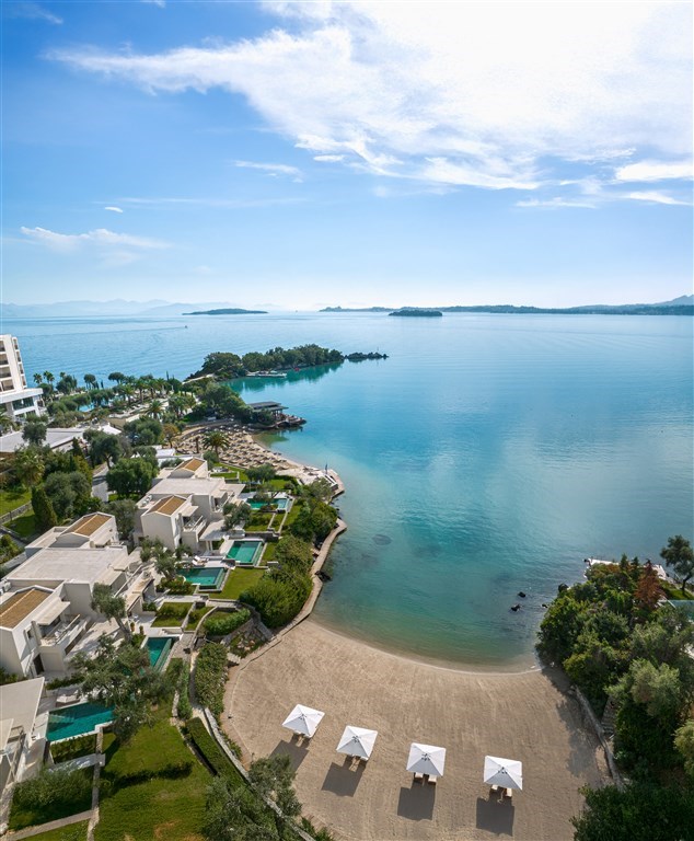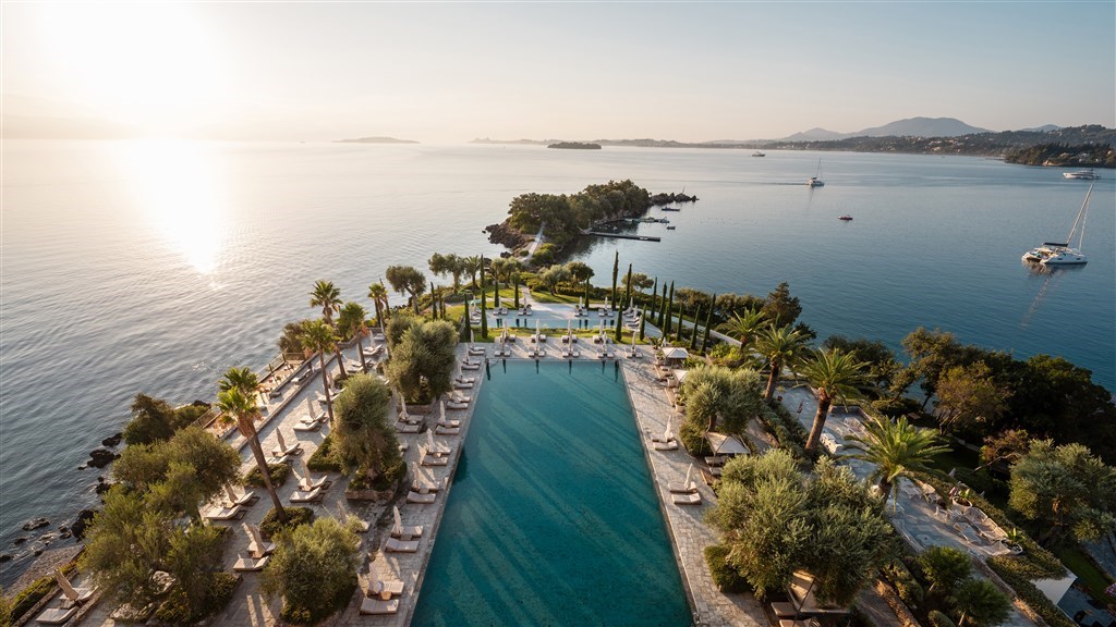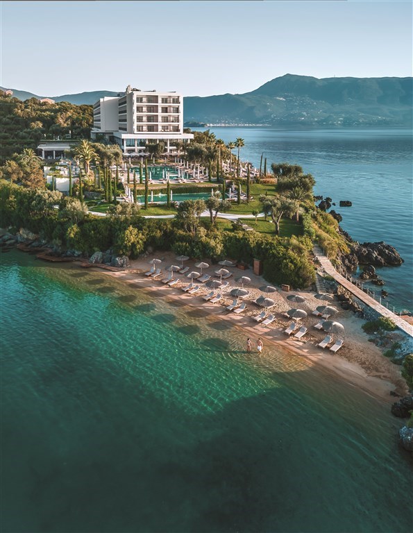 Nádherný resort Grecotel Corfu Imperial se nachází nedaleko letoviska Dassia, 12 kilometrů na sever od hlavního města Korfu, má ideální polohu u třech soukromých písčito-oblázkových pláží poloostrova Kommeno. Hotel dvakrát denně zajišťuje autobusové spojení s hlavním městem.
