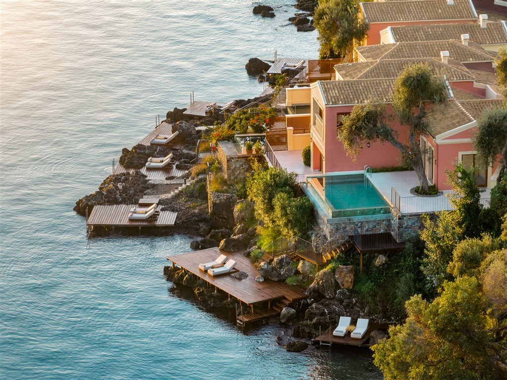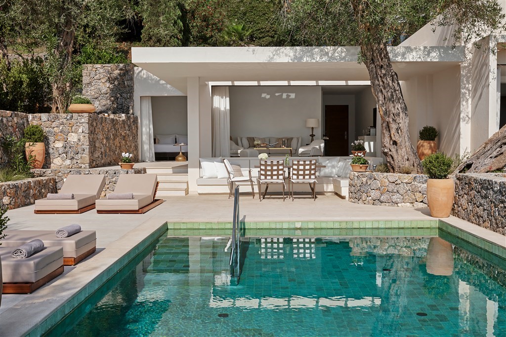 možnost ubytování v rodinných suitách, suitách a bungalovech se sdílenými bazény a vilách s privátními bazény přímo u moře