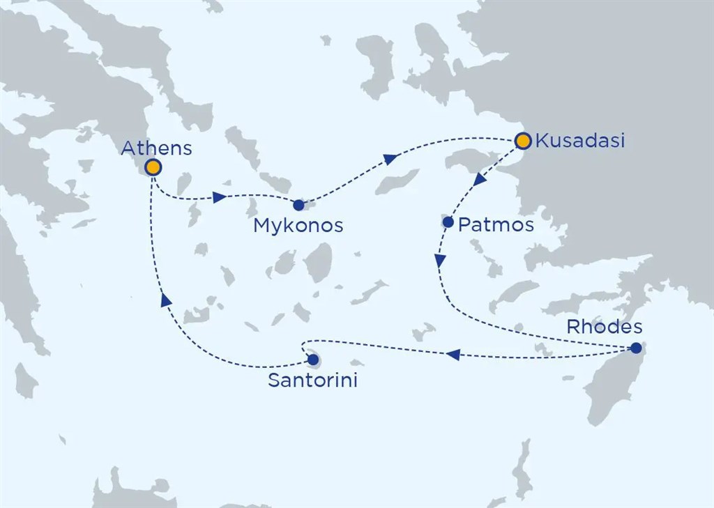 Pětidenní plavba Iconic Aegean nabízí skvělou příležitost poznání nádherných ostrovů v Egejském moři včetně starověkých památek, autentické řecké kuchyně i současného Řecka. Z okouzlující řecké metropole Athén se vydáte na plavbu po tyrkysovém Egejském moři během níž si můžete vychutnávat neopakovatelné scenérie řeckého ostrovního světa. Romantický ostrov Santorini s bělostnými kostelíky, ikonické větrné mlýny na Mykonosu, starobylé stavby na Patmosu i majestátní hlavní město ostrova Rhodos vás nadchnou. Během plavby budete mít příležitost navštívit i Turecko - Kusadasi, kde se nabízí prohlídka proslulého Efesu.