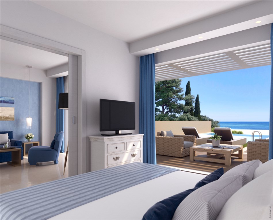 Luxusní Ikos Dassia Resort špičkového hotelového řetězce Ikos Resorts se nachází přímo u písečné pláže lemované vzrostlými borovicemi a olivovníky v letovisku Dassia, 14 km od hlavního města, 20 minut jízdy vozem od letiště.