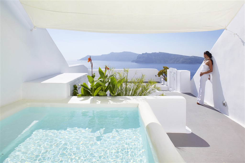 Luxusní resort Katekies Kirini Santorini and SPA je vystavěný ve stylu kykladské architektury přímo na útesu a nabízí výhled na nádherné scenérie Egejského moře. Z bezpečnostních důvodů není povoleno ubytování dětí mladších 13 let.
