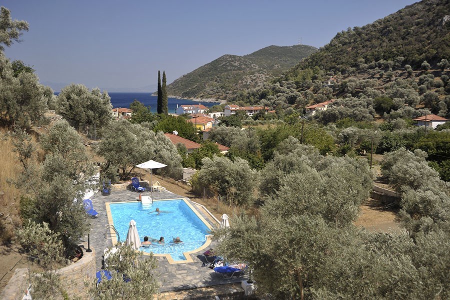 Komplex Kerveli Luxury Villas v malém klidném zálivu Kerveli na východním pobřeží Samosu asi 200 metrů od pláže.