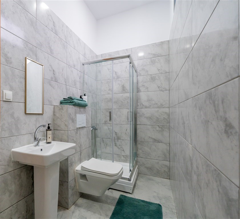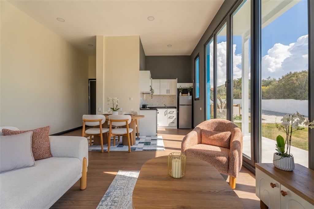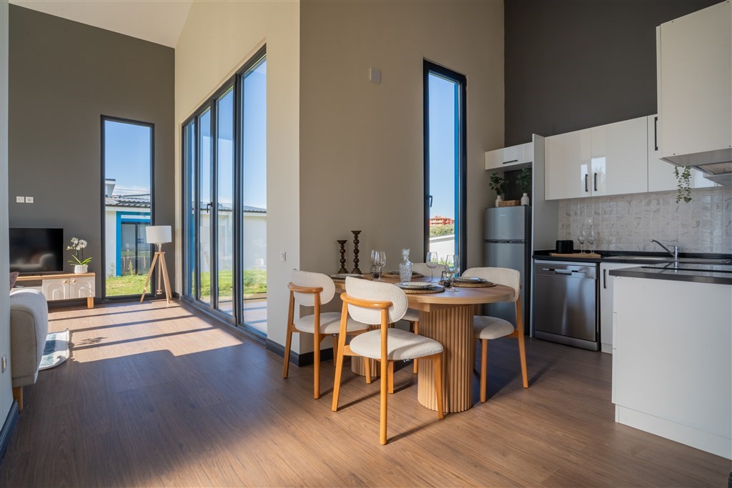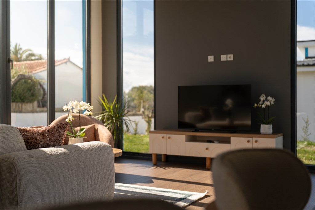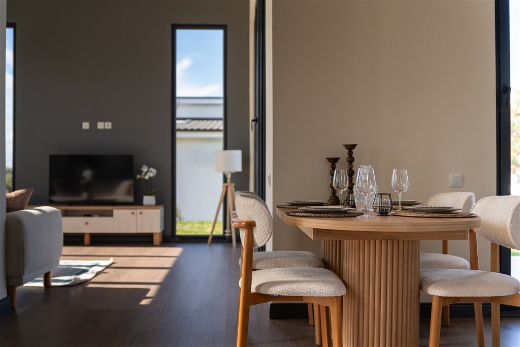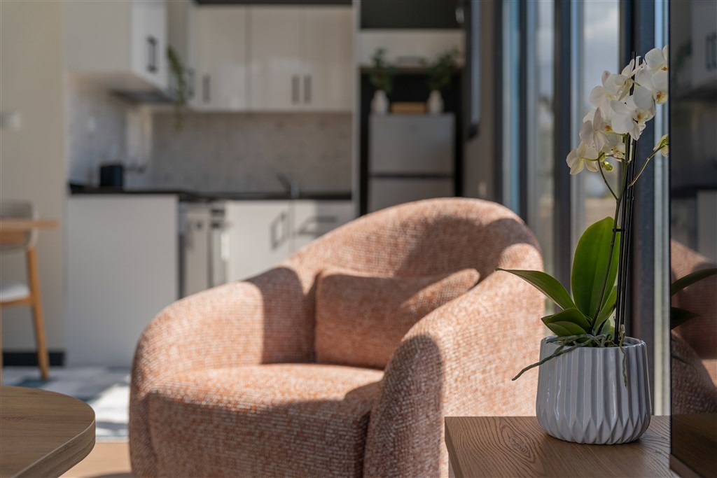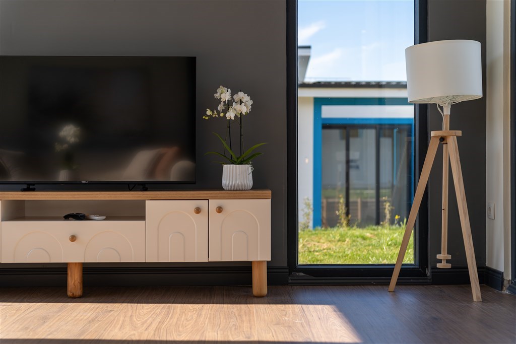 Hosté se mohou těšit na plně vybavené kuchyně, oddělené obývací prostory, dvě koupelny, luxusní kosmetiku, ortopedické matrace a moderní technologie včetně 55" 4K TV a rychlé Wi‑Fi.