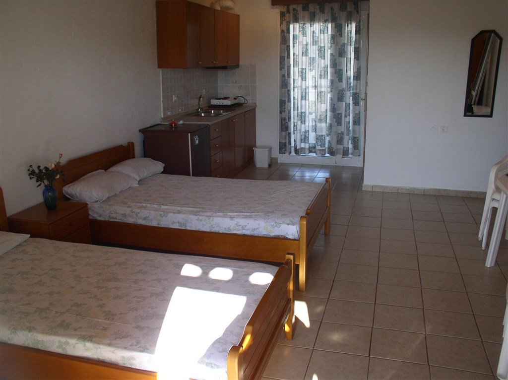 Pokoje mají prostorné balkóny, z některých je částečný výhled na moře. V oknech a balkónových dveřích jsou sítě proti komárům. V apartmánech i studiích jsou televize, zapojení klimatizace je za poplatek.