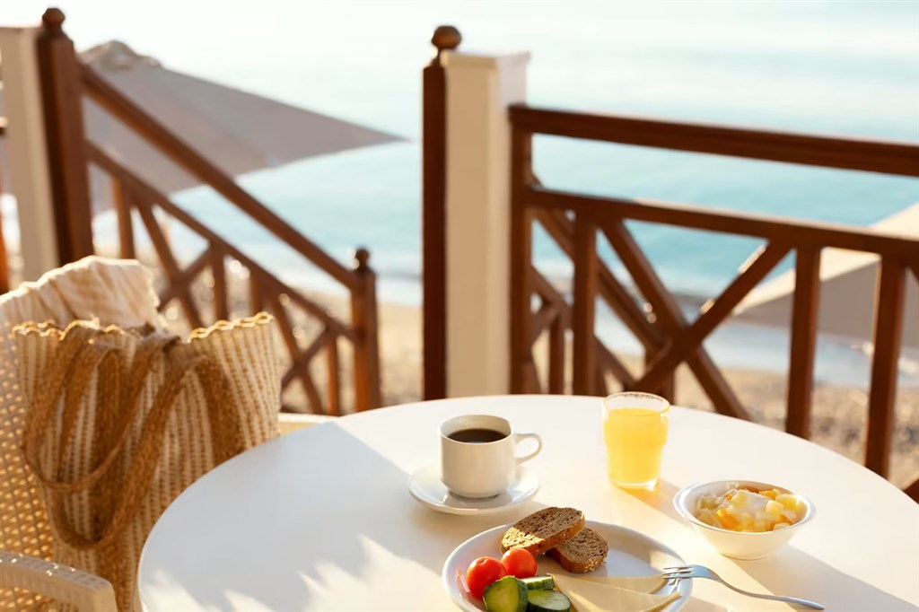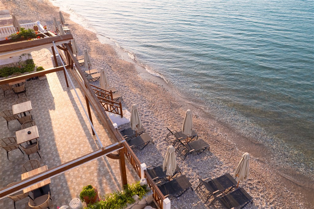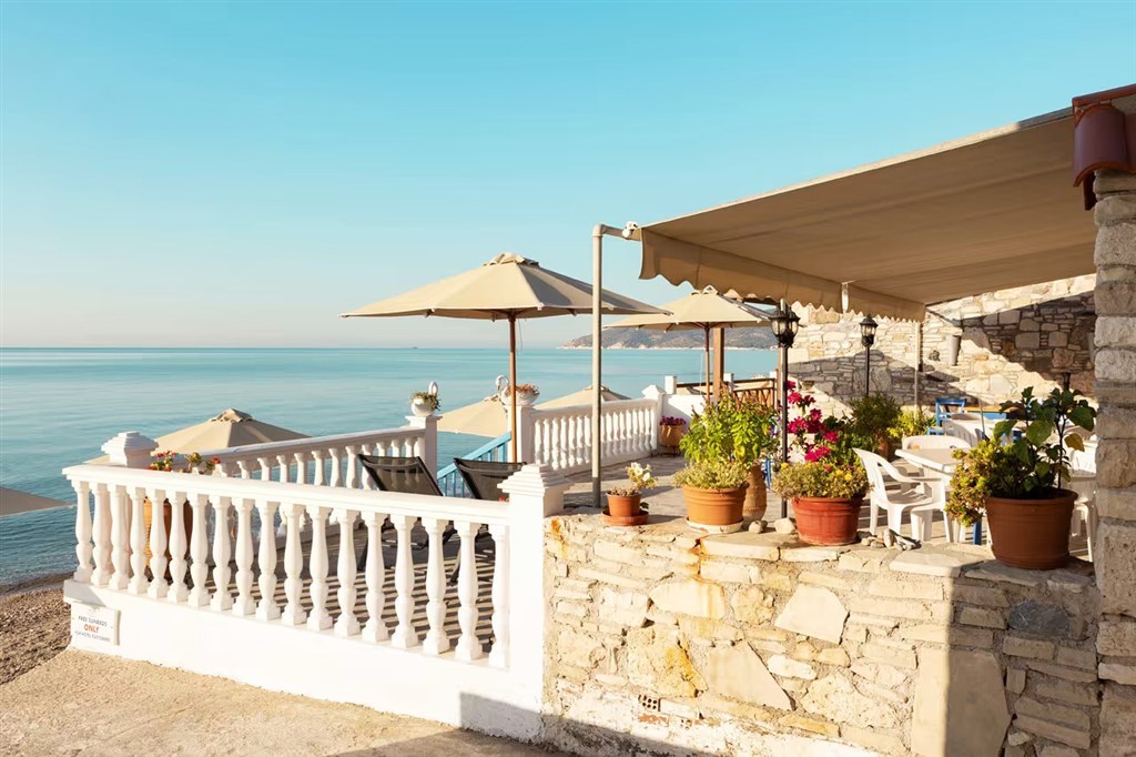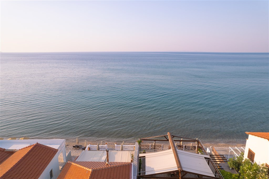 terasa přímo u moře s výhledem na Egejské moře,