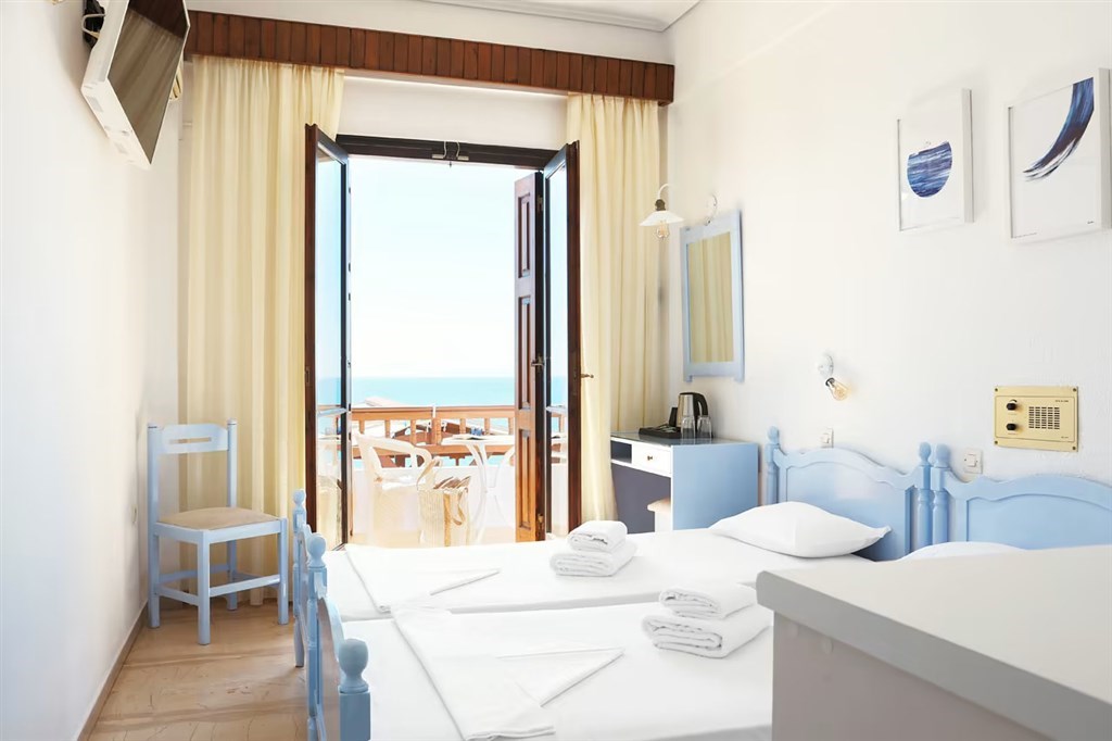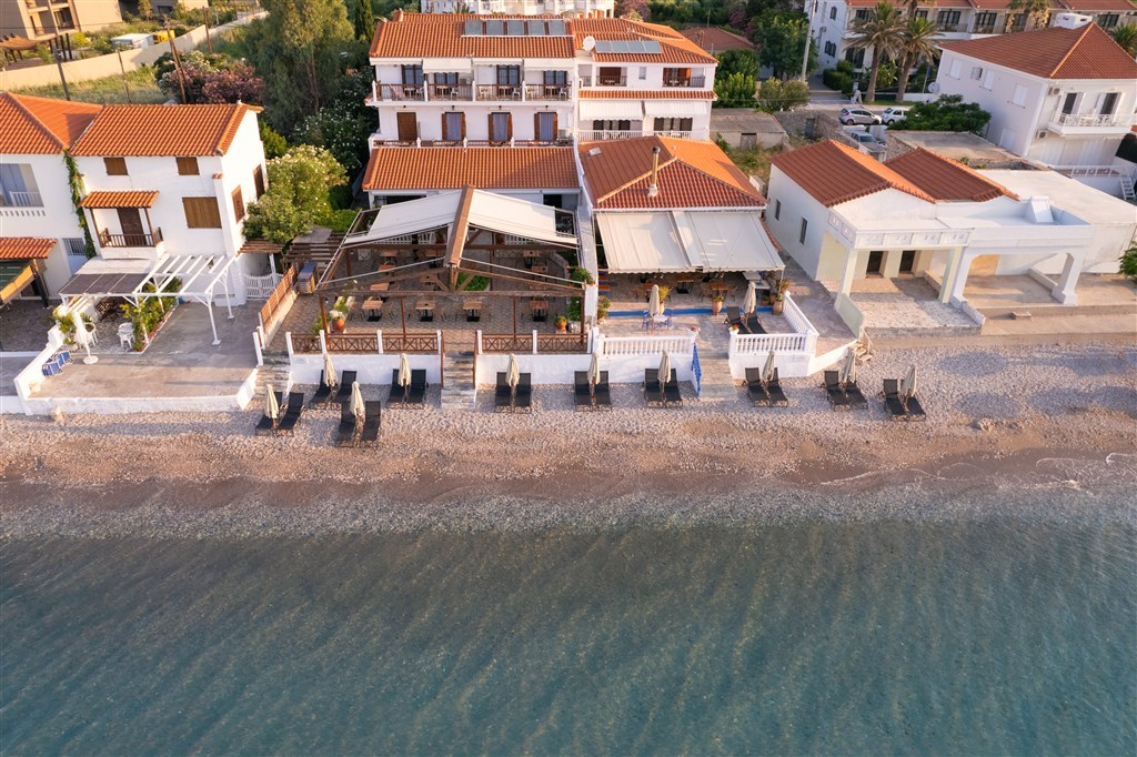Potokaki Beachfront hotel s úžasnou polohou přímo u moře se skládá ze dvou menších budov spojených hotelovou terasou. Hostům je k dispozici i soukromá pláž.